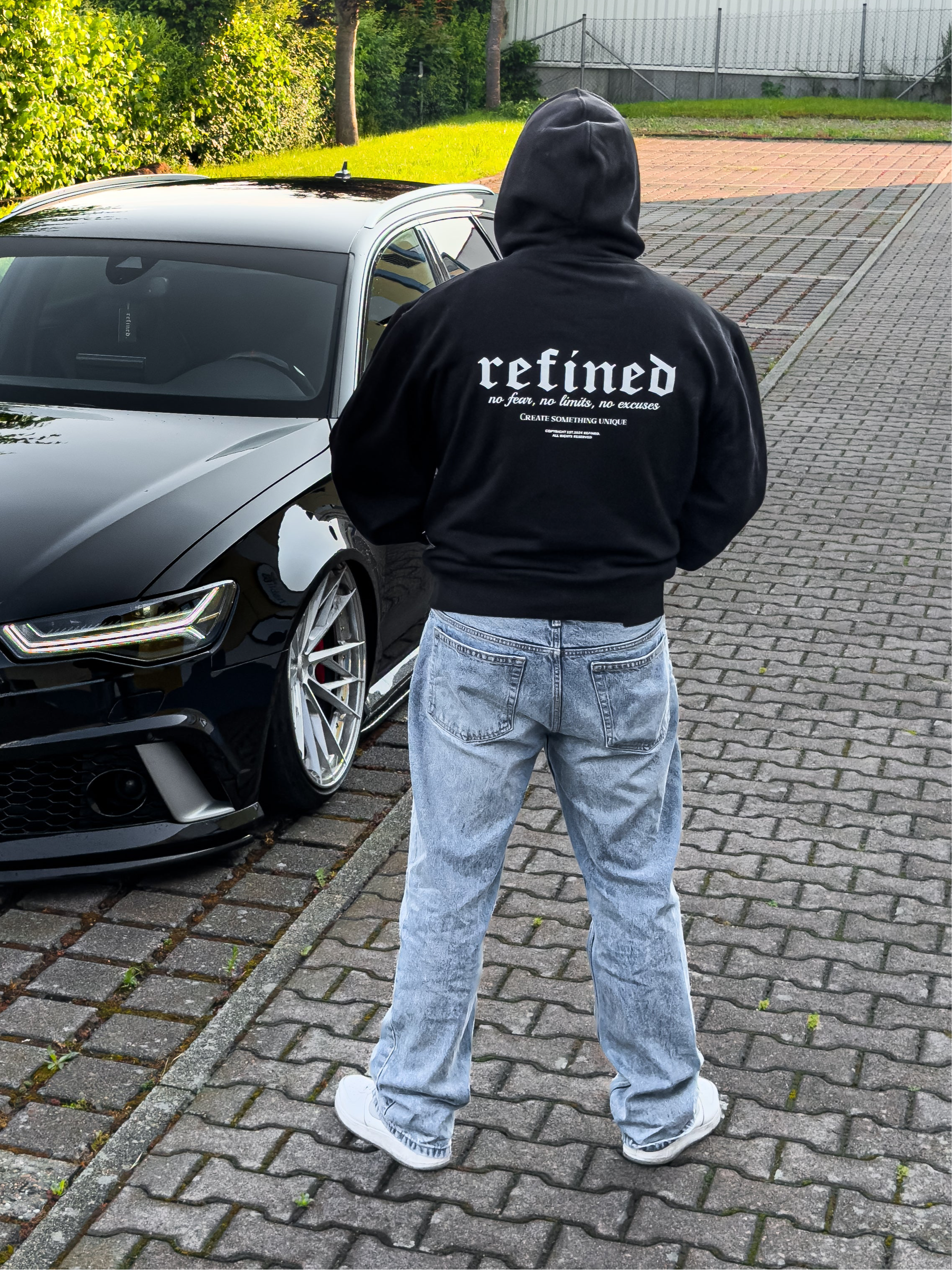 €35,00 EUR€35,00 EUR €60,00 EUR/lässiger refined. Oversized Hoodie mit unserem Slogan. "no Fear, no Limits, no Excuses" "Creative Something Unique" Hochwertiger Kapuzenpullover ohne Kordel drop shoulders lockerer Bund Farbe: Black...